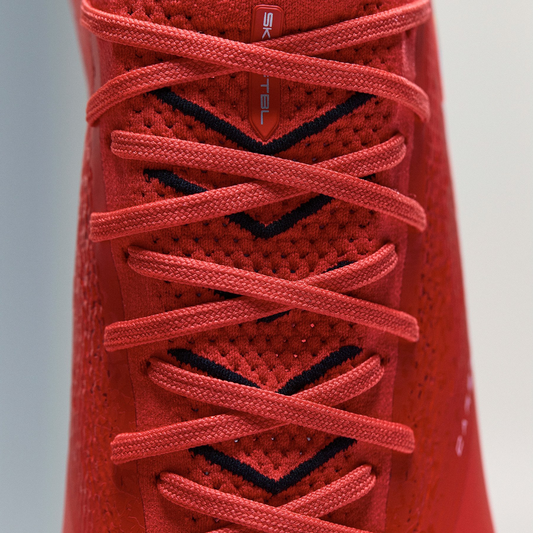 Lehký pletený svršek zajišťuje přesné přilnutí a bezpečné uchycení.